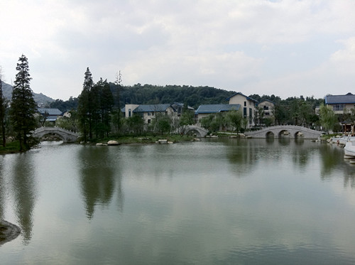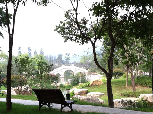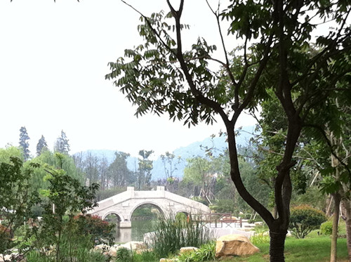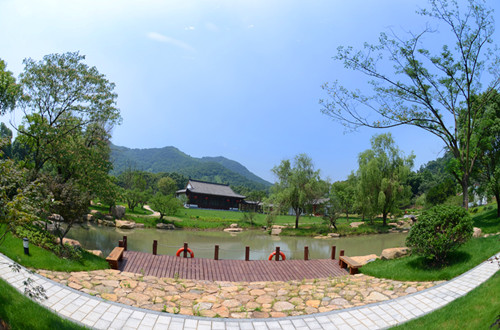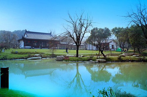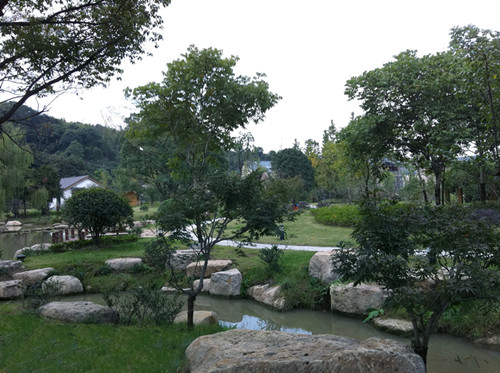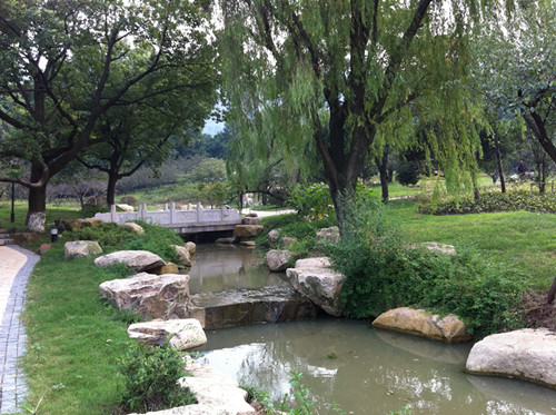 本工程位于山水如畫、鐘靈毓秀,自然人文景觀極為豐富的余杭區塘棲鎮,是杭州市風景名勝的一個重要組成部分。工程通過開挖水體,營建長廊、飛橋、湖心島,營造“君子淵”景觀,使整個北園盡顯“疏影橫斜水清淺”的迷人詩境。